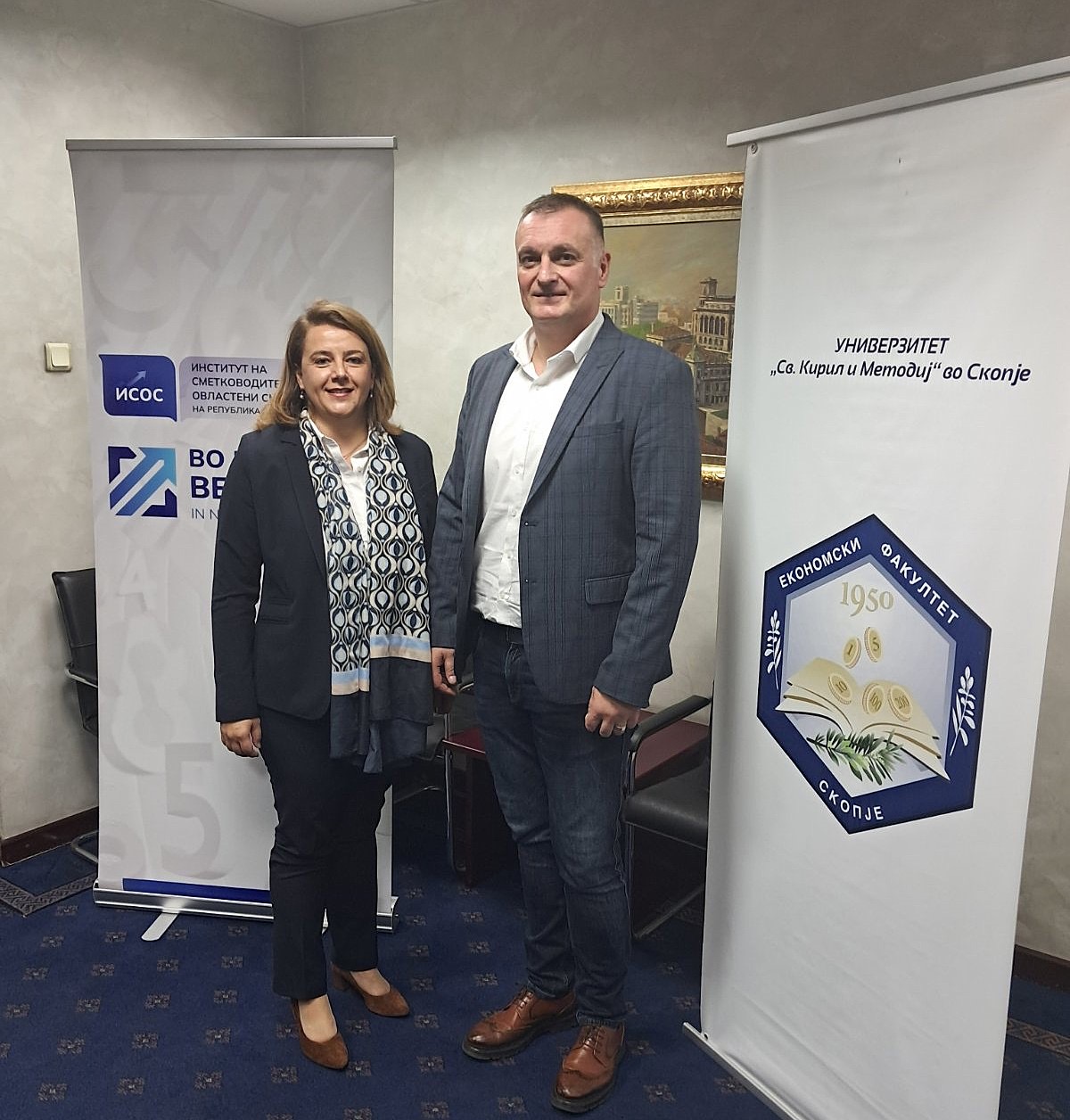 Искористување на научните, стручните и професионалните капацитети на двете институции, во функција на создавање високостручен кадар од областа на сметководството и останатите економските науки е главната цел што треба да се постигне со Меморандумот за деловно-техничка соработка помеѓу Економскиот факултет при Универзитетот „Св. Кирил и Методиј“ во Скопје и Институтот за сметководители и овластени сметководители (ИСОС), што го потпишаа деканот на факултетот, проф. д-р Предраг Трпевски и претседателката на ИСОС, Весна Прентоска.